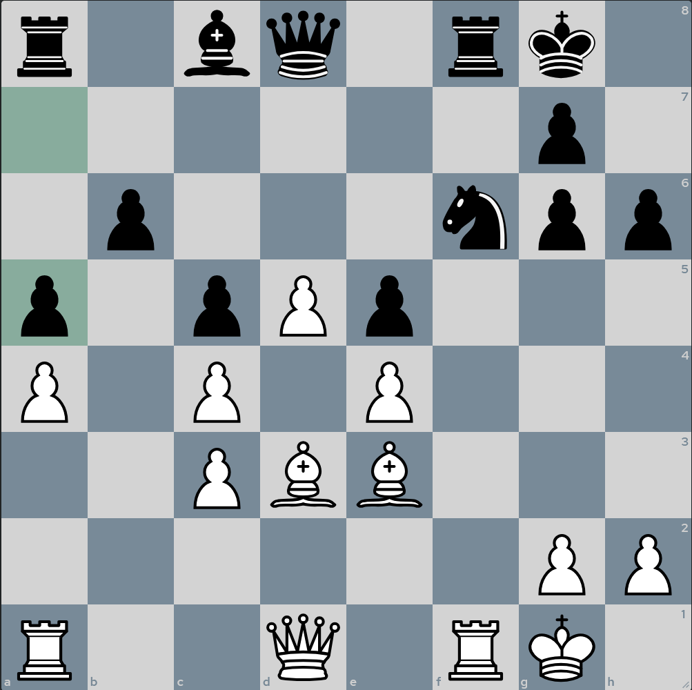 Weak Pawns: White - a4, c3, c4, e4 — Black - b6, e5.